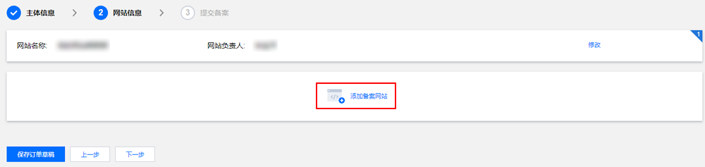 如需备案多个网站,则可单击添加备案网站,添加新的网站信息。